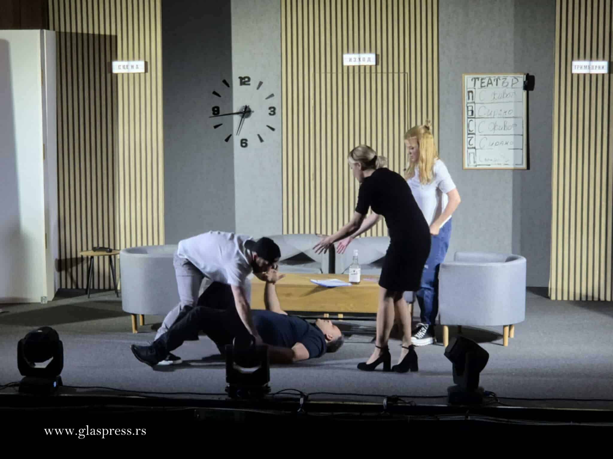 Комедията „Чакащи артисти“ беше представена в голямата зала на Центъра за култура в Босилеград и предложи на публиката вечер, изпълнена със смях и динамични сценични обрати. Гостуването на спектакъла е осъществено от Общинския драматичен театър в Кюстендил, по покана на Центъра за култура в Босилеград.